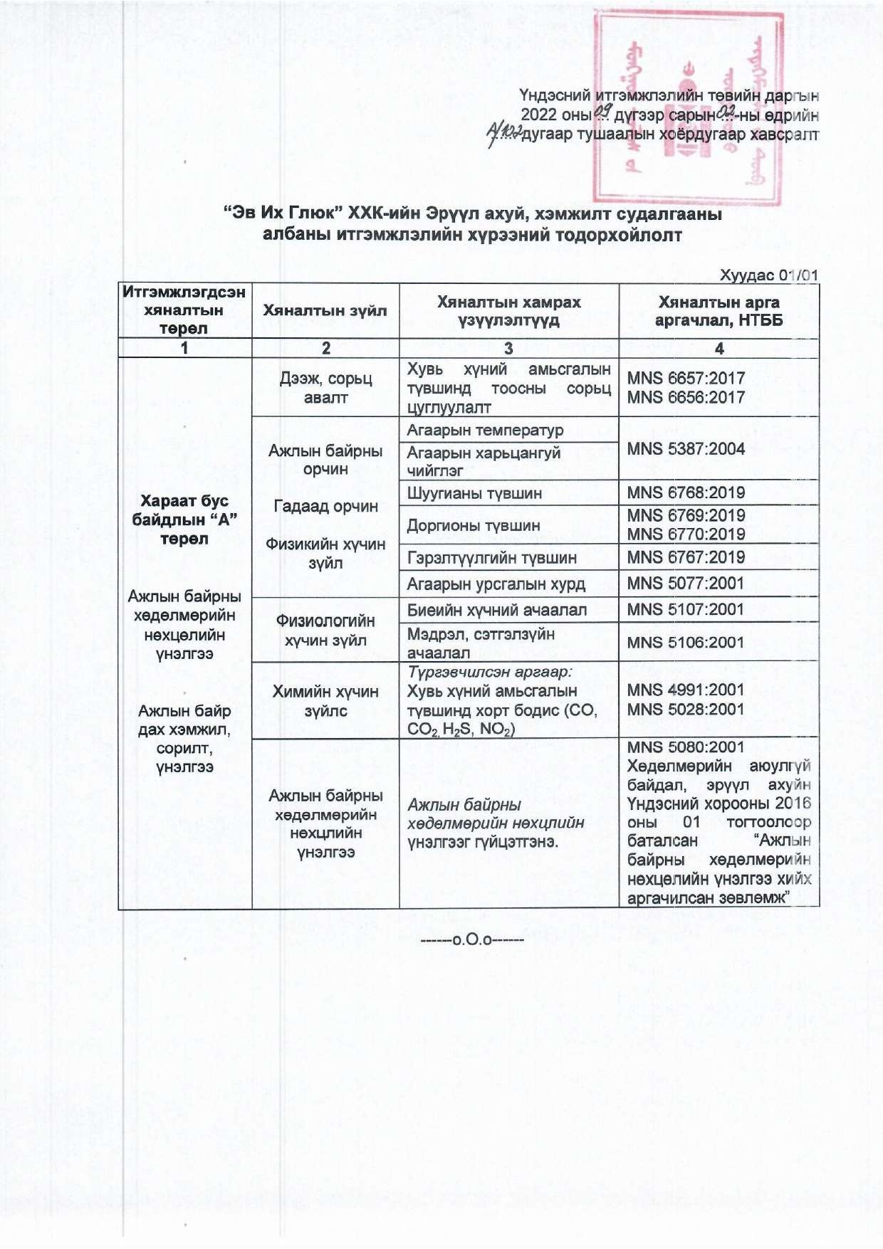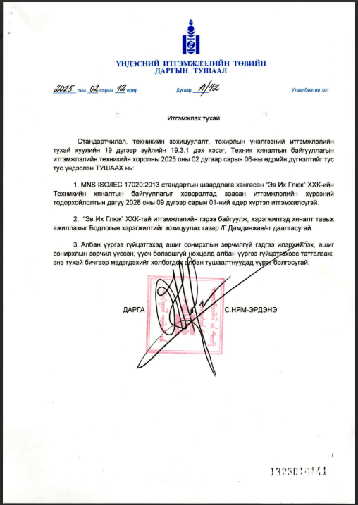 Нийтийн хоол үйлдвэрлэл үйлчилгээ баталгаажуулалт