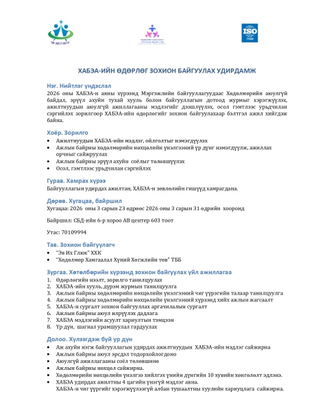 ХАБЭА-ийн өдөрлөг зохион байгуулах удирдамж гарлаа